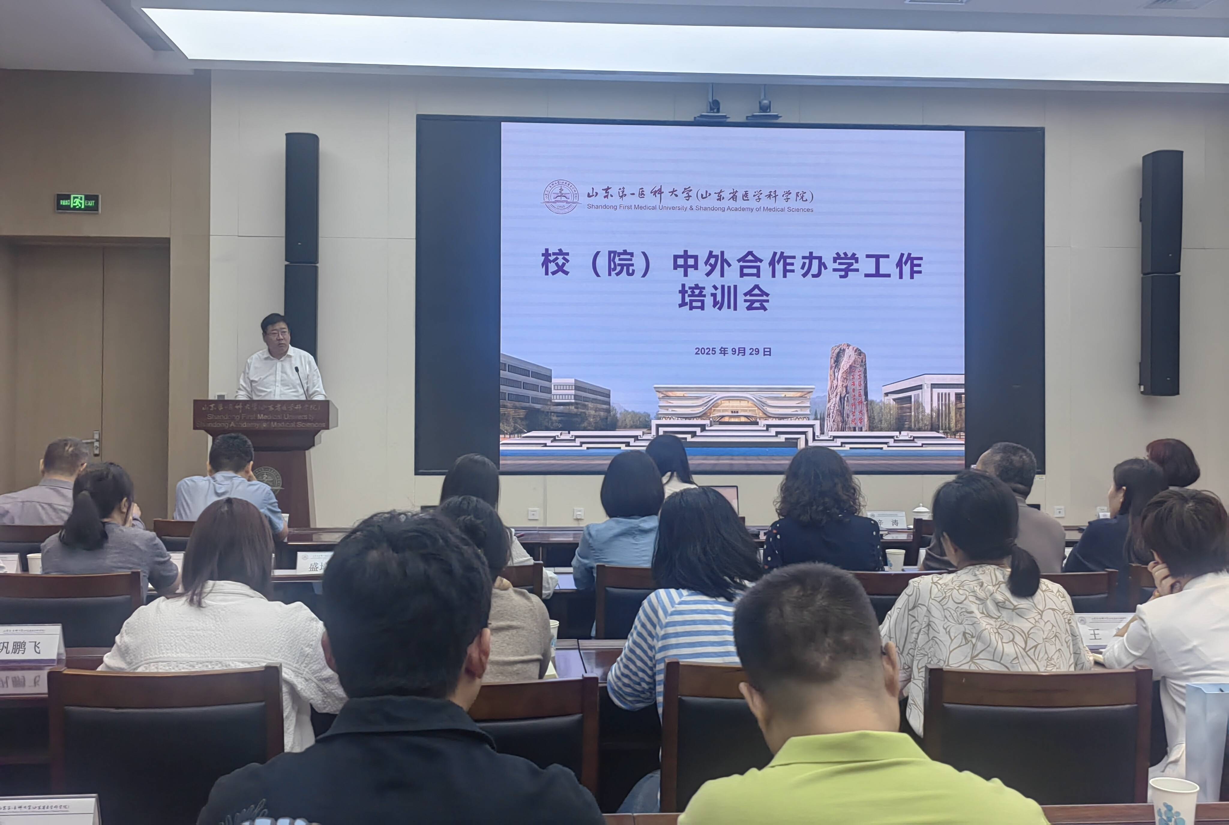辛涛在讲话中回顾了校(院)中外合作办学的成效以及与国内一流医科大学的差距。他强调,中外合作办学已成为校(院)国际化战略的重要组成部分,面对新挑战与新机遇,全校上下需统一思想、凝聚共识,不断深化对合作办学政策法规、运行模式及质量标准的理解,确保项目规范化、高质量、可持续发展;大胆探索合作新模式,全力打造山一大中外合作办学特色品牌。