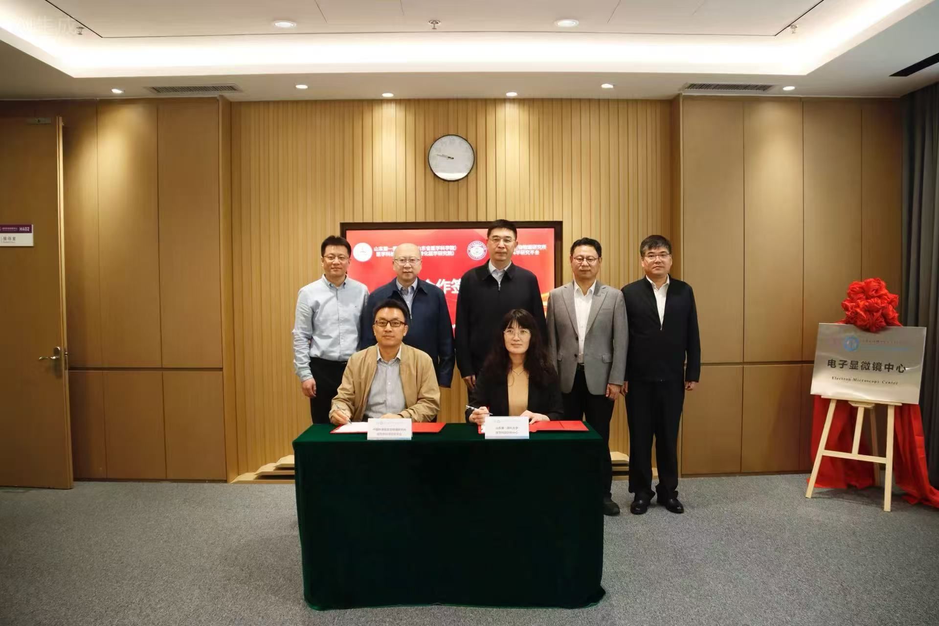 刘思金和赵志刚共同为“电镜中心”揭牌;张占军代表校(院)为高璞颁发“电镜中心”学术主任聘书;在全体与会领导的见证下,双方签署合作协议,正式开启深度合作新篇章。