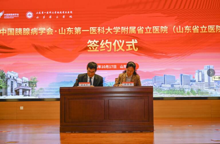 活动中,中国胰腺病学会向山东第一医科大学附属省立医院授牌,双方共同签署了合作协议。