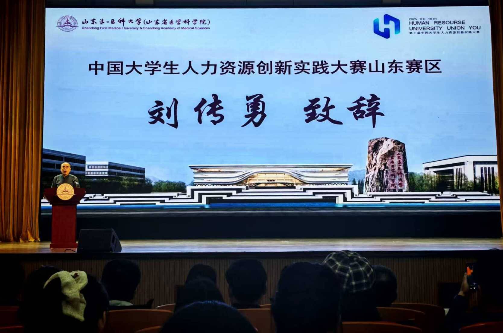 10月18日,第十届中国大学生人力资源创新实践大赛山东省赛在校(院)顺利举行。本次大赛由中国人才交流协会等单位联合泰安市人力资源和社会保障局、泰安高新技术产业开发区管理委员会共同主办,山东第一医科大学(山东省医学科学院)、泰安天贶产业投资集团有限公司、泰山人才发展集团等单位共同承办。来自省内19所高校的200余名本科生、研究生齐聚一堂,同场竞技。副校(院)长刘传勇出席开幕式并致辞。