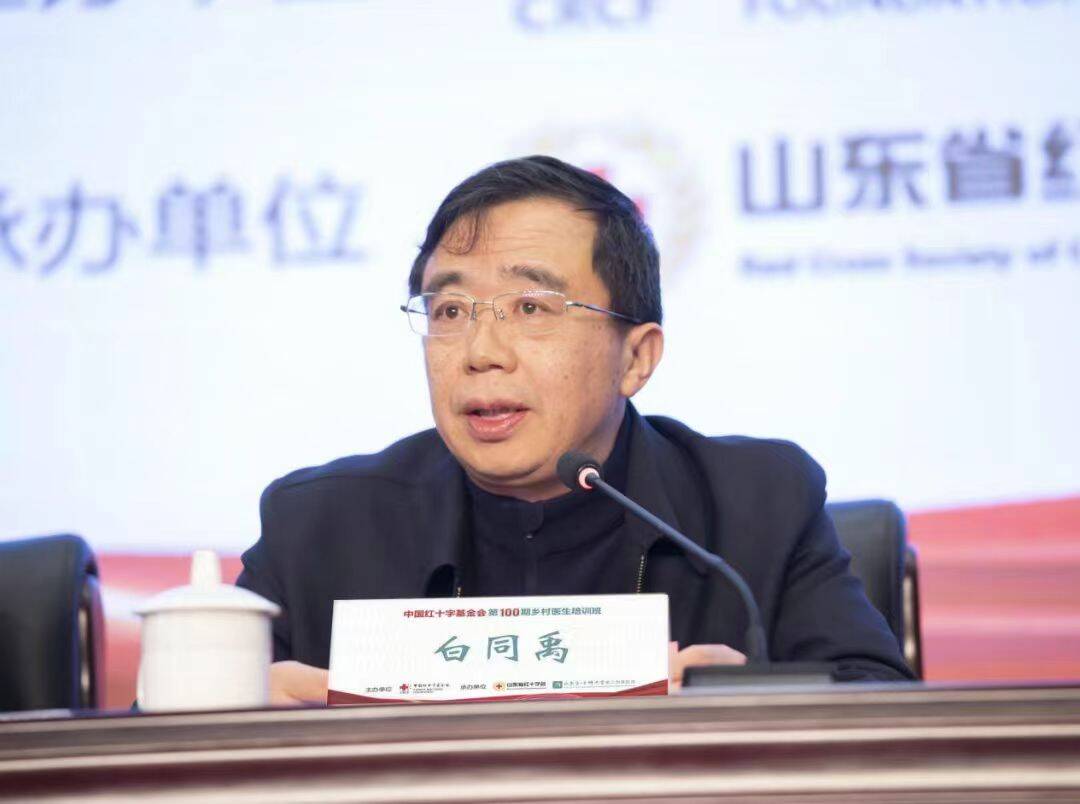 白同禹在讲话中介绍了山东省在乡村医生培训领域的实践成果,希望以本次培训为契机,持续深化与各方合作,推动基层医疗服务水平再上新台阶。他对各级红十字会、医院在履行社会责任、参与红十字事业方面所做的工作和取得的成效给予了充分肯定,强调要不断总结创新做法,推进红十字与卫生服务中心深度融合,大力弘扬“人道、博爱、奉献”的红十字精神,切实打造群众身边的红十字会。