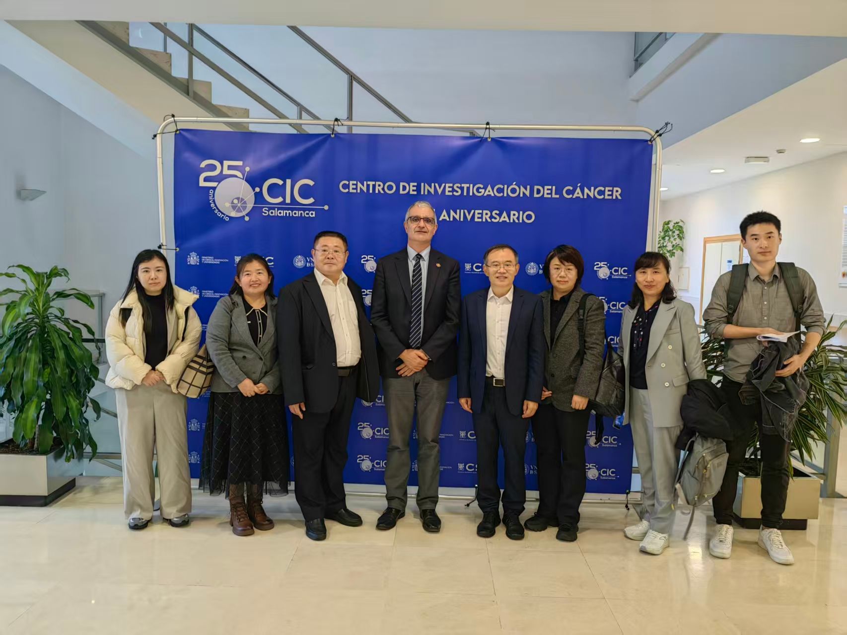 在萨拉曼卡大学附属癌症中心,代表团与中心负责人、西班牙癌症研究协会 (ASEICA) 前主席何塞·加西亚·布斯泰洛(Xosé R. García Bustelo)博士、教授深入沟通,在研究生联合培养、国际化课程共建、中青年人才互访等方面达成共识。此外,代表团实地参观萨拉曼卡神经中心,详细了解其在医学研究与临床实践领域的先进经验及平台建设成果,并就联合培养、国际合作项目申报等议题展开深度磋商。