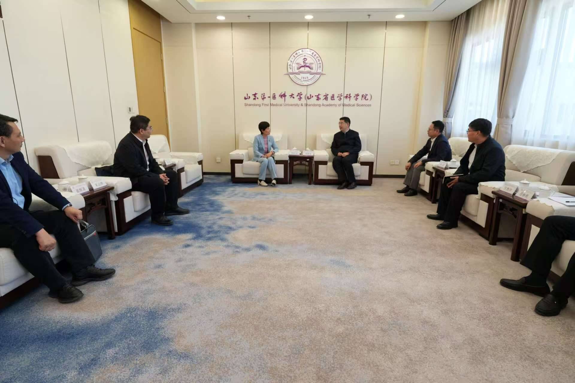 为深入学习贯彻党的二十届四中全会精神,11月25日,校(院)与淄博市人民政府签署合作备忘录。校(院)党委书记刘思金会见淄博市副市长、一级巡视员毕红卫一行。校(院)党委副书记、附属省立医院党委书记吴向东出席签约活动并致辞。党委委员、副校(院)长张占军主持签约活动。
