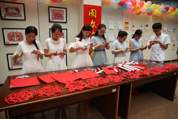 典礼结束后,领导、嘉宾以及现场观众先后欣赏了古典乐曲演奏、茶艺展示、剪纸表演。应邀嘉宾更是挥毫泼墨,尽情展示书法技艺,为广大师生留下墨宝。