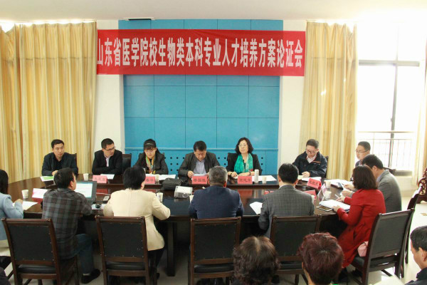 4月20日,山东省医学院校生物类本科专业人才培养方案论证会在我校召开。山东省医药生物技术学会理事长姜国胜教授,潍坊医学院生物科学与技术学院院长、山东省本科教育教学指导委员会生物技术与生物工程类专业委员会委员高志芹教授,滨州医学院药学院院长王春华教授,舒泰神(北京)生物制药股份有限公司王刚博士,潍坊医学院、滨州医学院、济宁医学院相关专业负责人作为论证专家出席活动。副院长、省医药生物技术学会教育分会主任委员王庆宝,副院长王鹏程出席相关活动。论证会由教务处处长徐惠主持。