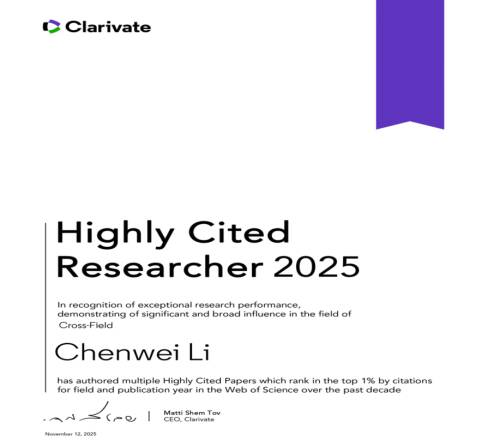 近日,科睿唯安发布2025年“全球高被引科学家”名单,校(院)化学与制药工程学院李晨蔚教授凭借在石墨烯功能复合材料领域的突出贡献成功入选该权威榜单。