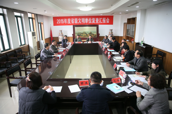 11月10日下午,以泰安市委宣传部文明办副主任范宝品为组长的省级文明单位复查组,受省文明委的委托,对我校2015年度的文明建设工作进行了全面的检查和指导。复查主要通过听取汇报、审核材料、问卷调查、实地考察等方式进行。院长王学春热情会见了复查组的领导专家。