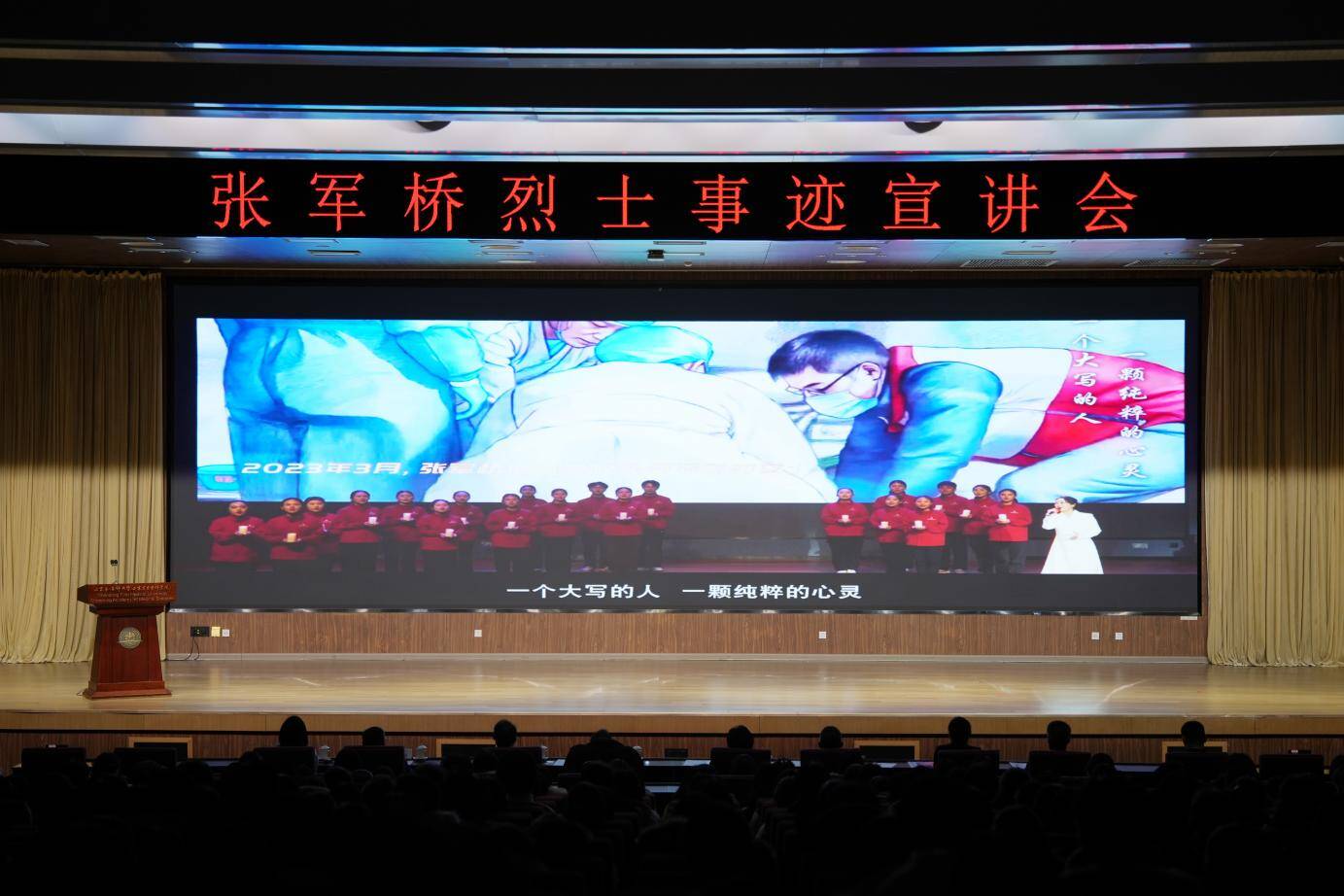 宣讲会上,时任张军桥大学辅导员、山东第二医科大学图书馆党总支书记姜忠华,张军桥大学同学、山东第二医科大学附属医院麻醉科副主任医师姚福旺,附属医院全科医学科护士长殷金娇,张军桥同事、附属医院药学部副主任药师纪颖慧,“军桥心跳行动”志愿服务队队员、校史馆讲解员曹兰迪,分别以张军桥同志的老师、同学、同事、学生的身份,再现了张军桥从求学、行医再到公益的人生轨迹,生动展现了他无私奉献、勇于担当的高尚品格。
