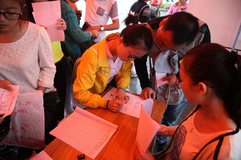 畅通绿色通道。在迎新现场,学生资助管理中心分别设立了“绿色通道”服务台和学生资助咨询服务站,安排工作人员现场解答新生及家长对各级资助政策的咨询,并指导办理相关入学手续,做到热情服务,答疑解惑。对被录取入学、无法缴纳学费的家庭经济困难新生建立“绿色通道”,让这部门同学先办理入学手续,然后再根据学生实际情况,入学后采取不同办法予以资助,确保“绿色通道”畅通无阻。另外,根据2014年国家调整生源地信用助学贷款额度的新情况,在开学前期与财务处收费科积极协调贷款新生的缴费问题,现场为760余名学生办理了生源地信用助学贷款回执手续,使学生安心而来、家长放心而归。