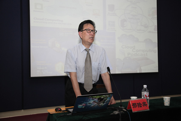 邢陆宾教授从摩尔定律和麦特卡菲定律入题,介绍了发展最快、影响最广、对当今社会所有领域都有深远影响的信息科学技术的发展历程、发展趋势及其对未来社会的巨大冲击和影响。他说,信息技术的移动化、依存化、融合化和虚拟化将逐步改变人类商业和生活模式。邢教授认为,超级计算机是人类现代文明的起点,而确保国家竞争力领先的驱动力就是超级计算机与新一代计算机技术的持续创新与革命。邢教授提出,“云计算网”的出现,意味着互联网的开发还只是处于初级阶段,远远没有达到尽头,世界上所有资源包括日常生活都可以通过物联网涵盖,这才是计算机的发展方向和真正的意义所在。