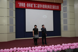 在第十七个“世界读书日”即将来临之际,为引导广大教师多读书、读好书、好读书,进一步传承和弘扬“业精德馨,诲人不倦”的优良教风,树立良好的师德师风,4月18日晚,我校在信息图书楼学术报告厅举办了主题为“讲师德,铸师魂”的第二届青年教师经典美文诵读比赛。学校领导王长松、郭爱英、邢金亮出席活动并为获奖选手颁奖。