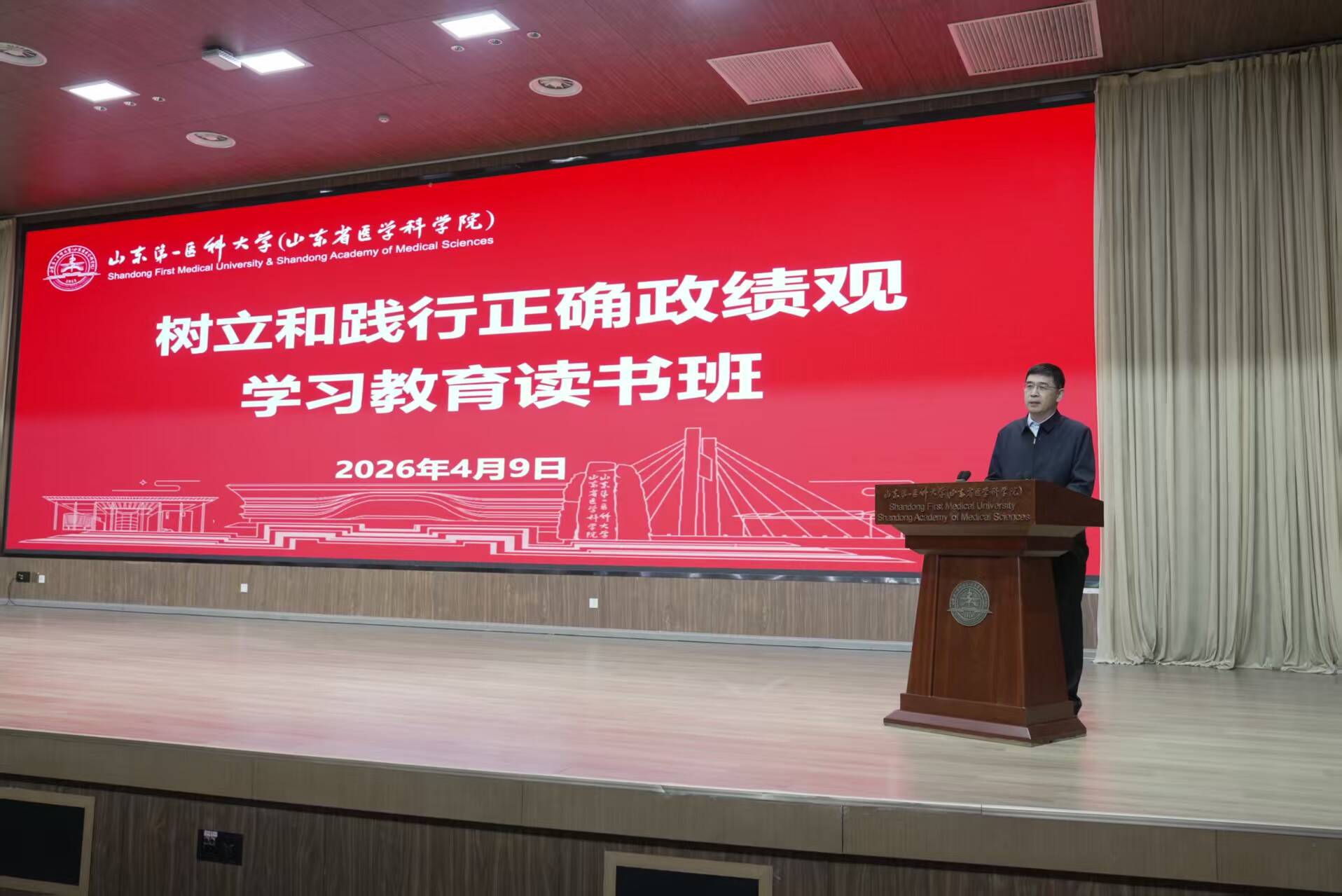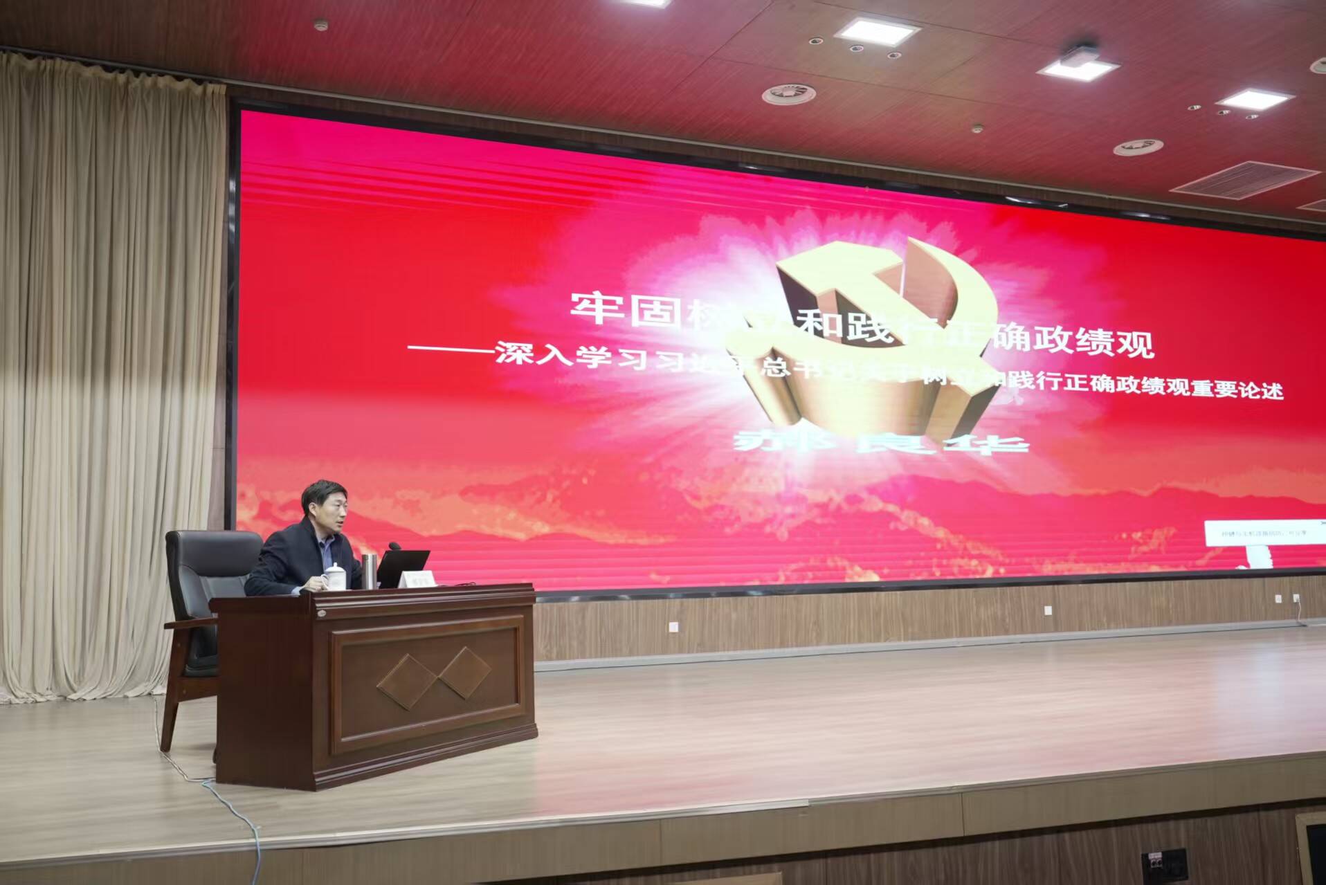 读书班开班式邀请山东省委党校(山东行政学院)哲学教研部主任郝良华教授作辅导报告,报告深入讲解了树立和践行正确政绩观的重要意义、丰富内涵、突出问题和实践要求,内容丰富、案例生动,为校(院)开展学习教育、推动各项工作提供了重要启迪和借鉴。