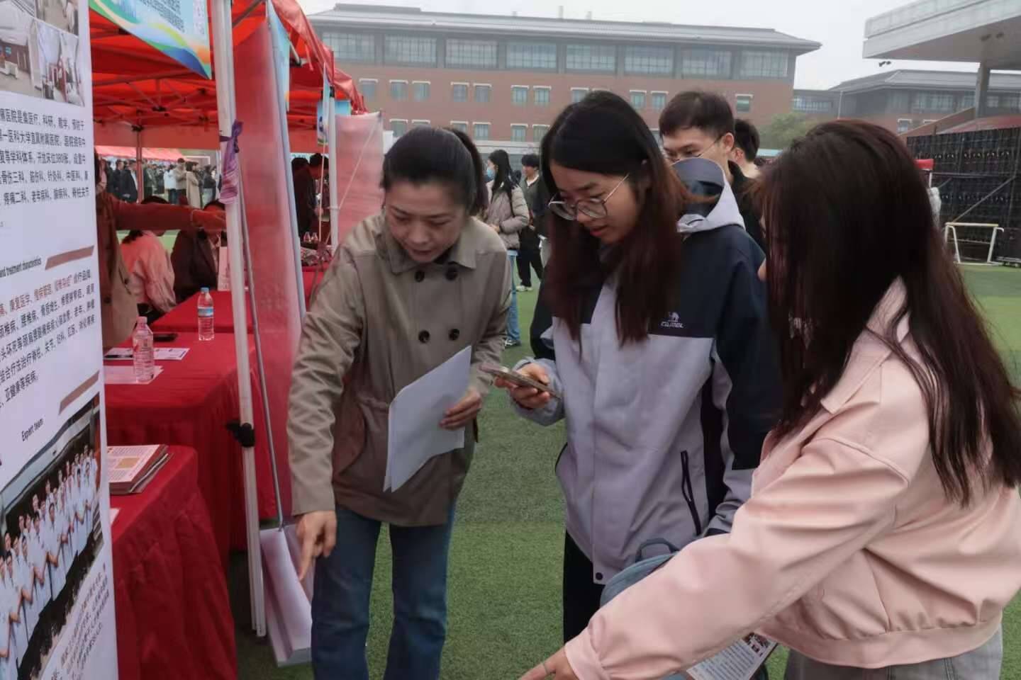 招聘会现场秩序井然、氛围热烈,毕业生们穿梭于各展位前,认真了解岗位要求、薪资待遇与发展前景,积极与招聘负责人交流沟通、投递简历。多家用人单位提前预约面试场地,简历接收后即刻开展现场面试;医疗卫生单位同步进行资格审查,招聘服务持续高效推进。本次招聘会有效搭建起校企、校地人才对接桥梁。