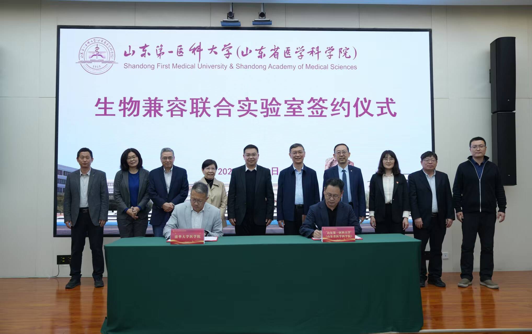 4月10日,山东第一医科大学(山东省医学科学院)与清华大学医学院“生物兼容联合实验室”揭牌仪式在济南校区举行。清华大学医学院常务副院长祁海,校(院)党委委员、第一附属医院(山东省千佛山医院)党委书记孙志坚分别致辞。校(院)党委委员、副校(院)长张占军主持。