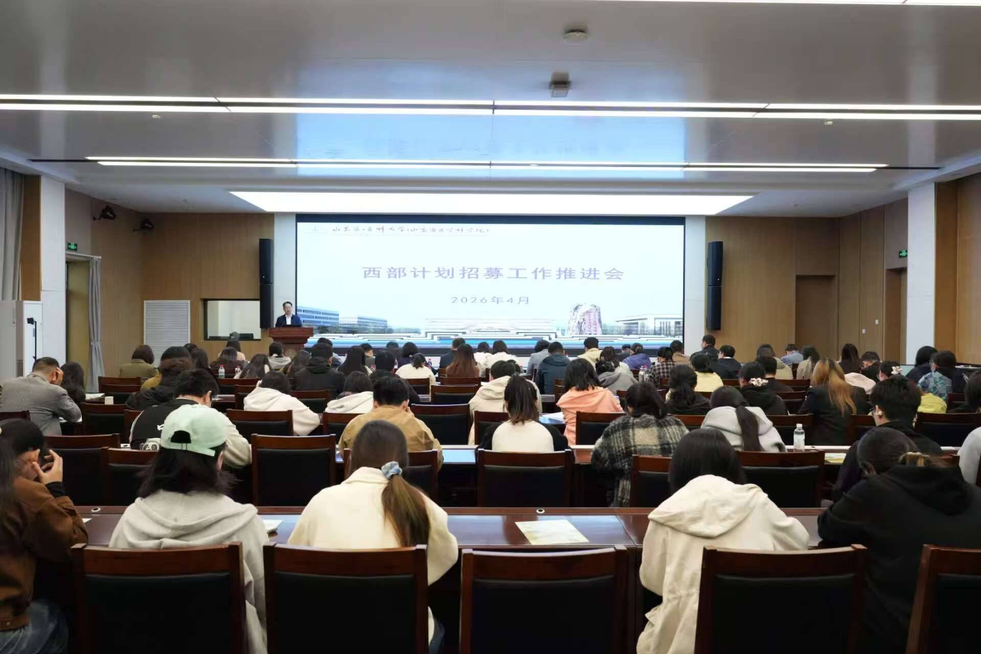 4月21日,校(院)2026年西部计划招募工作推进会在济南校区召开。校(院)党委委员、副校(院)长贾海宁出席会议并讲话。