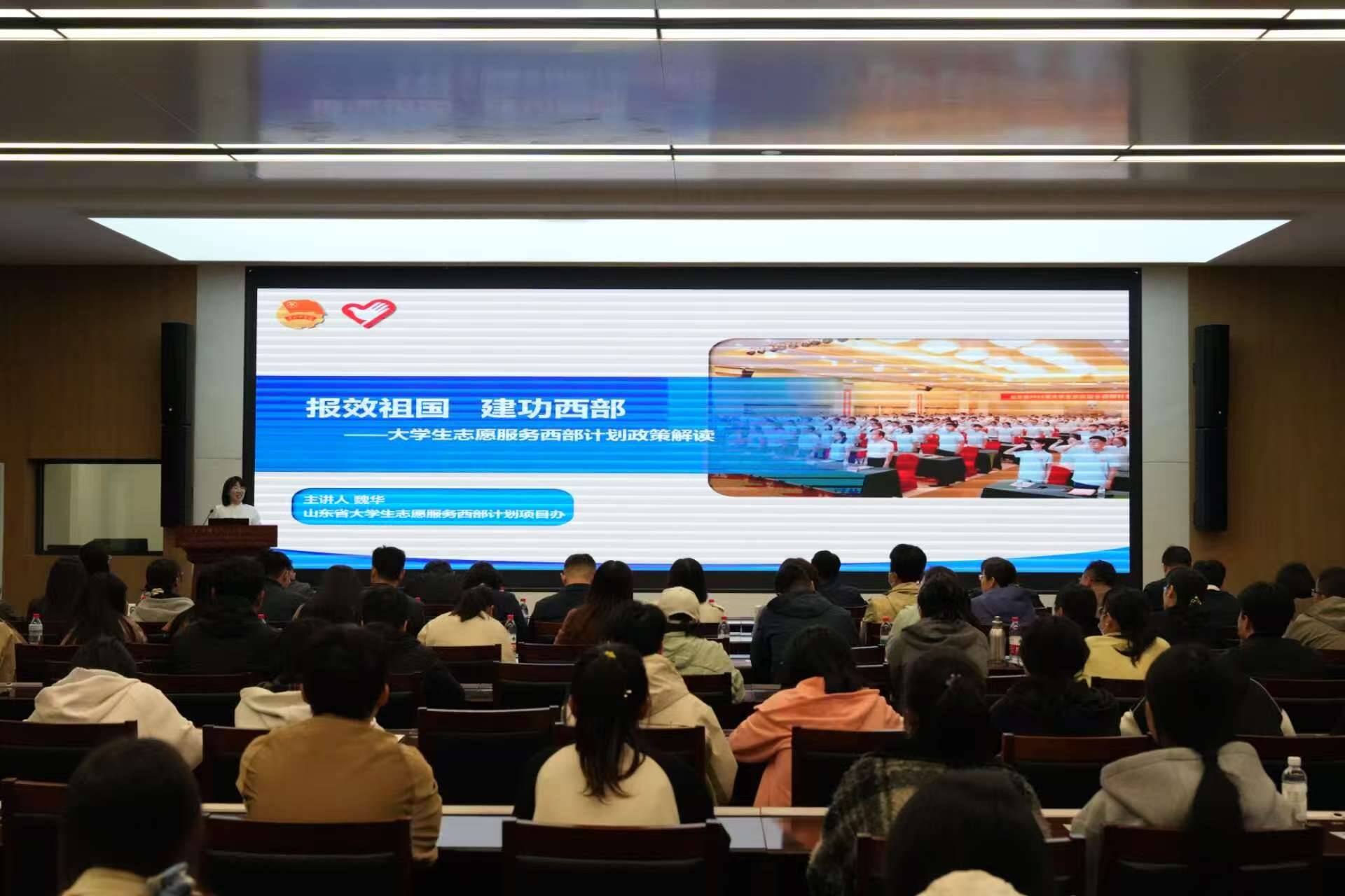山东省西部计划项目办主任魏华围绕西部计划政策开展专题宣讲,就项目实施、服务保障、招募流程等内容进行权威解读,为校(院)精准开展招募动员、政策答疑提供专业指导。