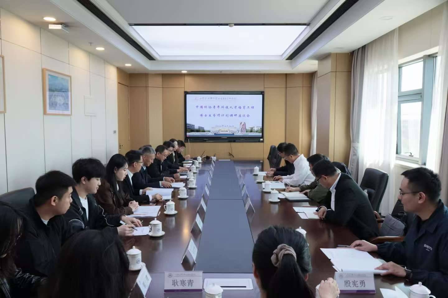 4月24日,中国科协培训和人才服务中心副主任李彪一行来校(院)调研,就“中国科协青年科技人才培育工程博士生专项计划”(以下简称“博士生专项计划”)工作进展、建设成效等方面进行座谈交流。山东省科协人才联络部部长杨西博陪同调研。校(院)党委委员、副校(院)长马鲁豫参加调研座谈会。