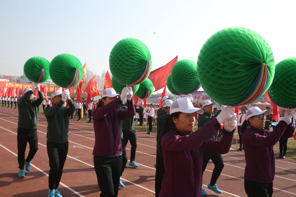 随着表演项目开启,运动场上群情激奋,热闹非凡。武术操、武术表演气势恢宏、场面壮观;力与美相结合的瑜伽表演使会场洋溢在一片粉色海洋中,将女子的坚韧与柔美展现的淋漓尽致;变换造型表演集中诠释了创意无限、赢得观众阵阵掌声;教职工排舞表演动感十足,活力无限。