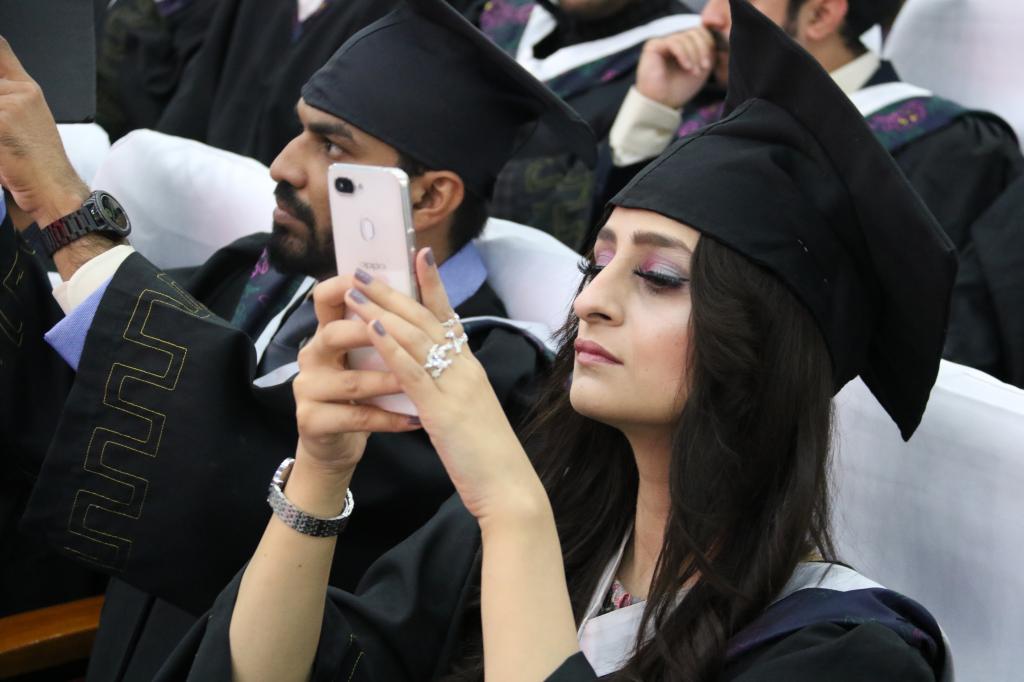 仪式在雄壮的国歌声中拉开帷幕。共有来自巴基斯坦、尼泊尔、加纳、苏丹、印度、孟加拉的111名临床医学专业留学生顺利毕业并获得学位。姚庆强、王鹏程为毕业留学生逐一拨正流苏,授予学位。