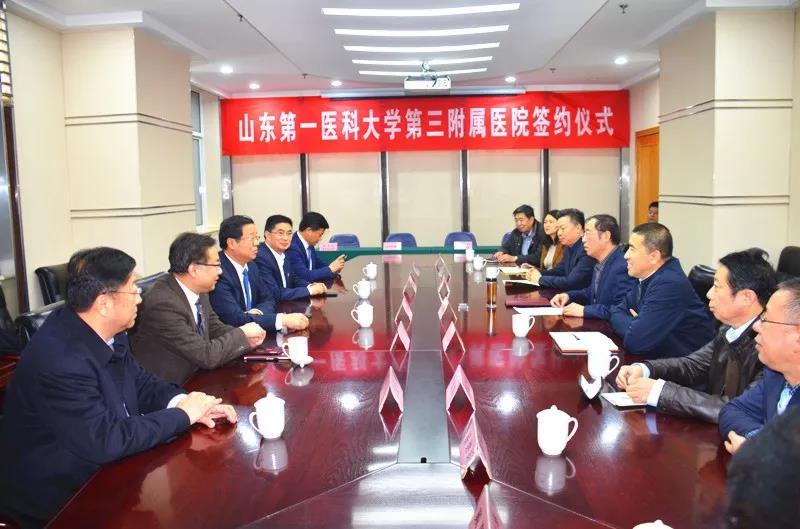 韩金祥在讲话中指出,济南市委、市政府对山东第一医科大学的建设发展高度重视,大力支持,济南主校区建设迅速推进,首批师生已顺利入住,市校合作持续深入,省市共建大学顺利推进,这为山东第一医科大学第三附属医院的发展奠定了坚实基础。希望两院领导班子切实把思想统一到济南市委、市政府和校(院)党委决策部署上来,进一步解放思想、创新思维,讲政治、顾大局、讲奉献,把双方之间的融合转化为事业发展的动力,共同在济南北部建设一所具有重要影响的新型医院,为人民群众提供更加优良的医疗健康服务。