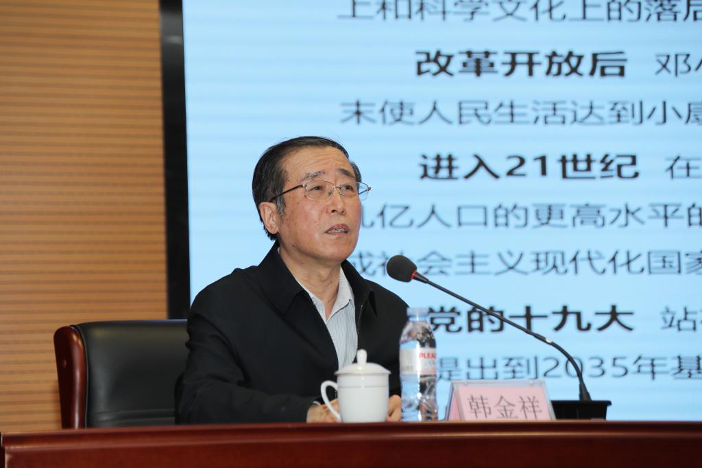 韩金祥指出,党的十九届五中全会是我们党在全面建成小康社会胜利在望、全面建设社会主义现代化国家新征程即将开启的重要历史时刻召开的一次十分重要的会议。全会审议通过的《中共中央关于制定国民经济和社会发展第十四个五年规划和二O三五年远景目标的建议》,是开启全面建设社会主义现代化国家新征程、向第二个百年奋斗目标进军的纲领性文件。习近平总书记在全会上的重要讲话,系统回顾了一年来党和国家工作,深刻阐明了制定“十四五”规划建议的主要考虑、突出特点和重要内容,围绕贯彻落实全会精神科学回答了一系列方向性、根本性、战略性重大问题,创造性地提出了许多新思想新观点新论断新要求,为推动高质量发展、构建新发展格局,夺取全面建设社会主义现代化国家新胜利提供了科学指南和基本遵循。全会取得的重要成果、作出的重大部署,顺应时代和实践要求,反映人民意愿和期待,对于动员和激励全党全国各族人民满怀信心迎接中国共产党成立100周年,继续抓住用好重要战略机遇期,推进中华民族伟大复兴历史进程具有重大而深远的意义。