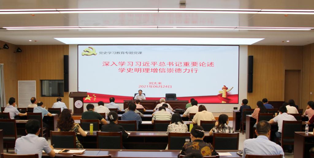 刘太来以“深入学习习近平总书记重要论述,学史明理增信崇德力行”为题,从新的觉醒、新的理想和信念、新的道路选择、新的社会制度诞生、伟大的历史性转折和进入新时代等六个方面回顾了党的奋斗历程和伟大成就,深刻感悟共产党人的初心使命;紧紧围绕党史学习教育的目标要求,阐述了“学史明理、学史增信、学史崇德、学史力行”的深刻内涵;结合校(院)纪检监察干部队伍实际,从要做“两个维护”的坚定实践者,创新理论的忠诚信仰者,牢记初心、一心为民的勤务员,党的革命精神和红色基因的传承人,敢于担当、攻坚克难的实干家,纪律严明、清正廉洁的干净人等方面对纪检监察干部提出明确要求。