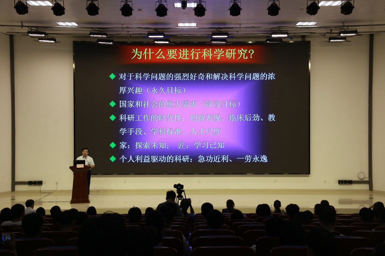 张运院士指出,科研课题设计应包含发现科学问题、广泛收集文献、定位科学前沿、提出科学假说、选择研究对象、策划研究内容、细化研究方案、确定统计方法、重视前期研究和强化质量控制等十个步骤。科学问题来源于临床实践,但是临床问题不等于科学问题,“一个好的研究在回答问题的同时还要提出更深层次的问题,形成‘滚雪球效应’。”科学研究关乎国计民生,是国家不断前进发展的基石。青年是科学研究的黄金时期,作为新时代大学生应珍惜宝贵时光、勤奋刻苦钻研,耐得住寂寞、坐得了冷板凳;同时要注意方法技巧,善于发现,善于总结,认真阅读顶级文献,杜绝学术不端,坚韧不拔寻找科研突破口。