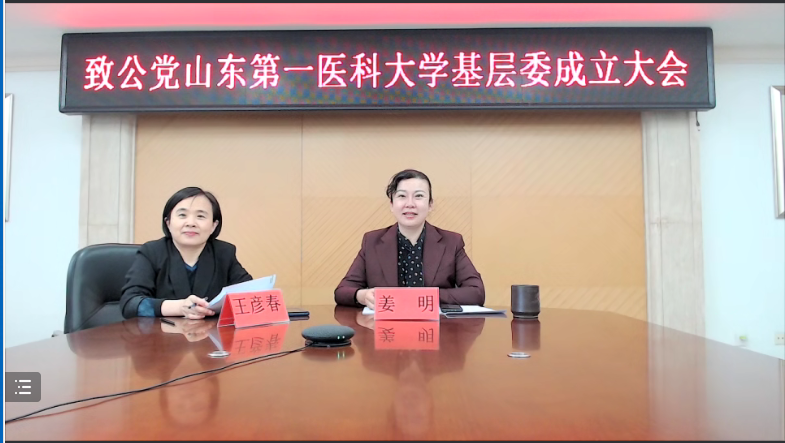 4月27日,致公党山东第一医科大学(山东省医学科学院)基层委员会成立大会以视频会议形式召开。省政协常委、致公党省委会专职副主委姜明、校(院)党委副书记刘思金出席会议并讲话。致公党省委会组宣部部长王彦春主持会议。