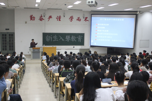 随着新生入学教育的开展,我院于9月14日晚在教学南楼C2017室和C4013室继续开展2017级新生入学教育。此次教育的内容是图书馆的使用和学分制培养方案的介绍。