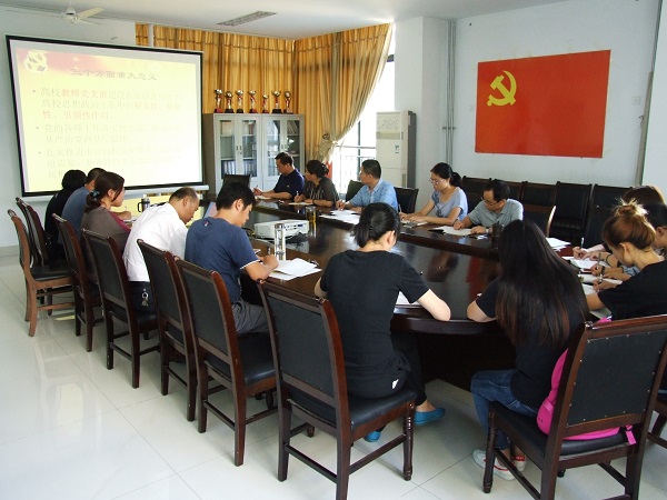 随后,与会人员结合学习内容,就加强教师党支部建设进行了研讨。大家一致认为,教育部党组下发的《意见》,是落实党的十八届六中全会和全国高校思想政治工作会议精神的具体体现,对推进高校党支部建设的制度化、规范化、科学化,具有重要意义。《意见》强调了高校教师党支部在培养中国特色社会主义合格建设者和可靠接班人工作中的重要地位,列出了着力发挥教师党支部主体作用的四个方面,明确了教师党支部工作的首要任务、着力点、落脚点,以及优化党支部设置的模式和规范党支部组建的方式,对“三会一课”制度、组织生活制度、谈心谈话制度、民主评议党员制度等进行了严格规范,特别针对党支部书记培养培训、激励保障措施,以及青年教师党员发展等现阶段高校党建工作中的薄弱环节,提出了详细要求。