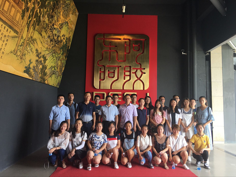 医药管理学院社会实践队伍考察参观了位于山东省聊城市东阿县的中国阿胶博物馆、阿胶生产线、黑毛驴养殖基地和东阿阿胶养生文化苑,同学们深刻地感受到了东阿阿胶企业深厚的文化底蕴与世代传承。其中,传统阿胶制作工艺的动态场景、阿胶的食用方法以及疗效让同学们对阿胶有了更深一步的了解;阿胶的传奇故事、阿胶灿烂久远的中医药史以及东阿阿胶企业的创立与发展历程则让同学们感受到了东阿阿胶的厚重文化气息。企业车间里全机械化整齐划一的生产线,产品生产和加工的高效,令人震撼。