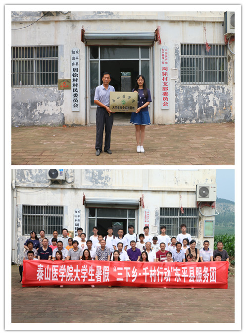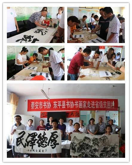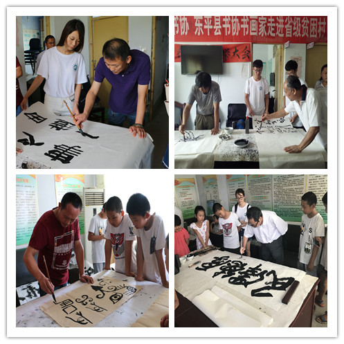 “助力扶贫,筑梦齐鲁”,为进一步响应团省委关于2017年“三下乡·千村行动”的总体要求,按照校团委统一部署,7月19日,我校大学生生殖健康服务团的师生们与泰安市书法家协会副主席兼秘书长张伟、副秘书长张廷栋,泰山学院美术教授李原,东平县书法家协会副主席李诚印、陈庆昕、王玉振等书画家们共赴东平县接山镇周徐村,开展文化扶贫和健康宣传与调研活动,同时为我校大学生社会实践基地揭牌。