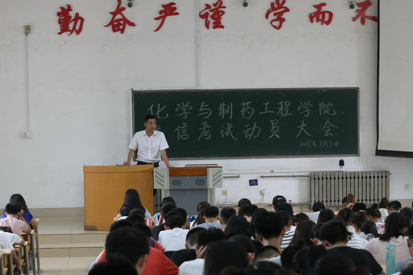 期末考试临近,为端正考风、严肃考纪,7月5日上午,化学与制药工程学院组织2016级学生召开了诚信考试动员大会,学院党委副书记赵传华、2016级辅导员以及2016级全体同学参加了本次动员大会。
