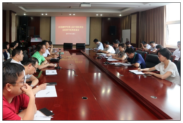 26日下午,我院“庆祝2017年第七届中国医师协会医师节医师座谈会”在综合楼四楼会议室召开。副院长杨晓雯,以及医务处、财务处等职能部门负责人、各住培专业基地的教学主任、教学秘书和规培学员代表共计67人参加了座谈会。医务处主任房振胜主持会议。