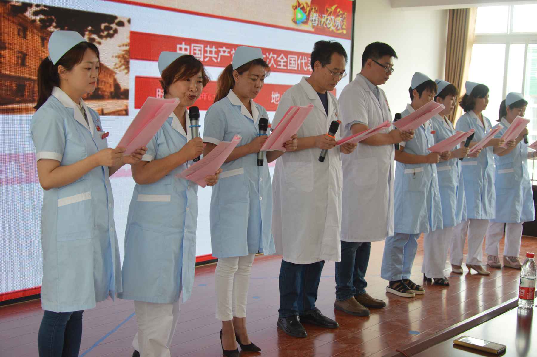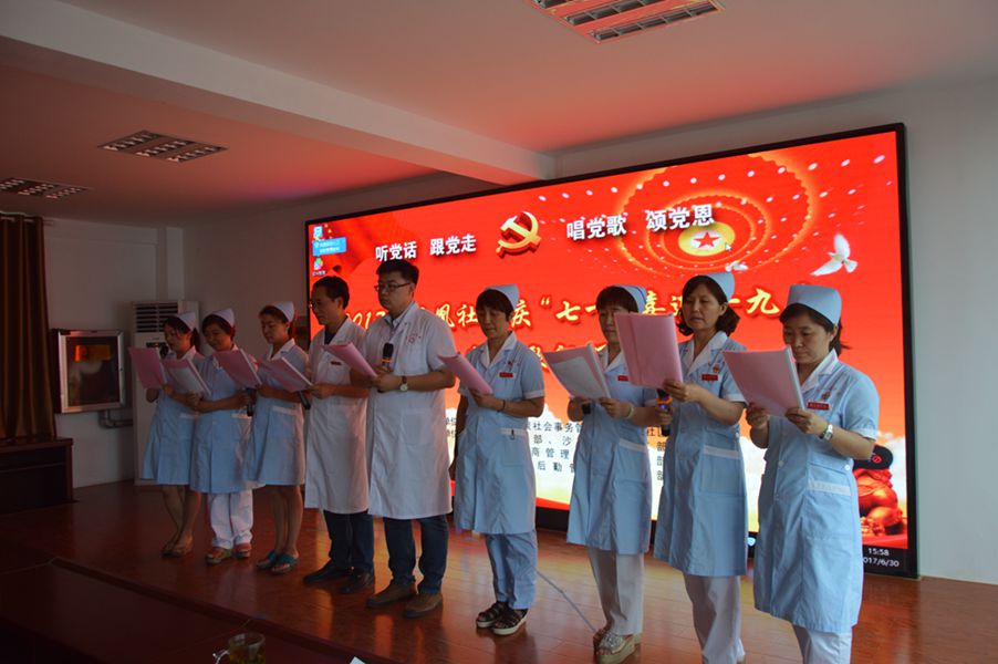 为庆祝中国共产党成立96周年,重温党的光辉历程,提高党员思想觉悟,追寻革命先辈的光辉足迹,深入推进“两学一做”学习教育常态化制度化,7月1日,校医院党支部与凤凰社区党支部联合举办了“庆七一,喜迎十九大,配乐诗歌朗诵会”主题党日活动。党支部全体成员、泰山医学院南丁格尔志愿者服务队参加了活动。