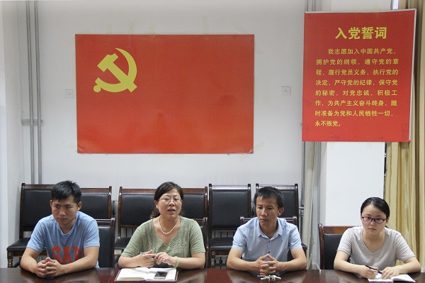 为庆祝建党96周年,教育引导广大党员增强党性观念、加强党性修养,强化“两学一做”学习和实践,药学院于6月30日下午在会议室开展了学生党员宣誓活动。药学院党委副书记张鸣凤、全体辅导员和学生党员参加了活动。