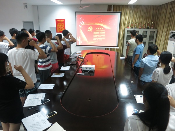 活动在庄严的国歌声中正式开始,面对鲜红的党旗,在领誓人学生党员齐迪的带领下,全体党员们高举右手,庄严宣誓,回荡着的誓言慷慨激昂。同学们纷纷表示,沉甸甸的十二句入党誓词,将镌刻于心,永不敢忘。