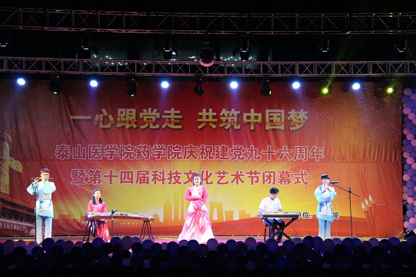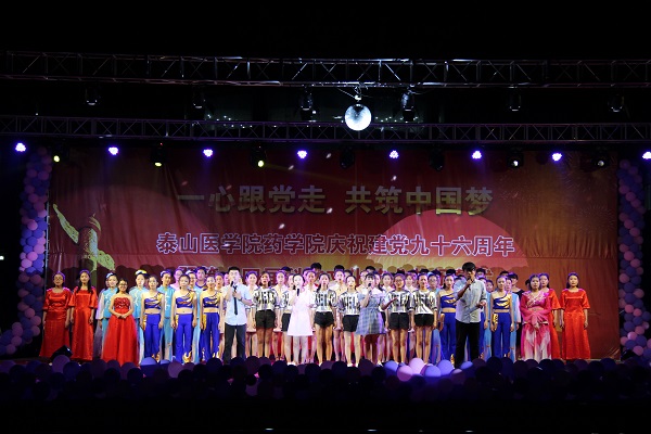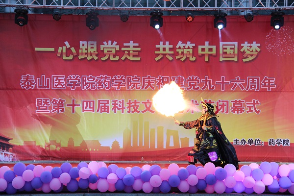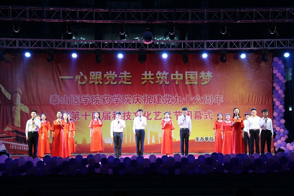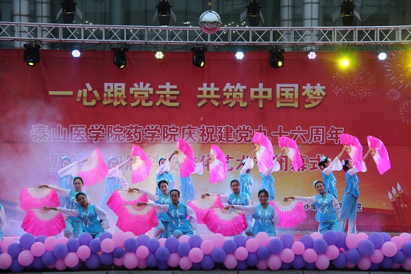 6月14日晚,药学院于文源广场举行了以“一心跟党走,共筑中国梦”为主题的“庆祝建党九十六周年暨第十四届科技文化艺术节闭幕式”晚会。校党委宣传部宋巧霞部长、校团委刘希欣书记、校学生工作处孙爱玲副处长、校团委李启明老师及药学院院长王德才、龙跃洲书记、张鸣凤副书记、药学院各教研室老师出席了本次晚会。