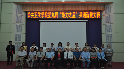 为了增进同学们对英语学习的热情,丰富校园文化生活,公共卫生学院于2017年6月8日在校本部图书馆报告厅举办了第九届“魅力之星”英语选拔大赛。本次大赛邀请了Dr.Richard MARKLUND、Dr.Ann MARKLUND、秦金红老师、卢宪玲老师、赵德会老师五位评委老师。
