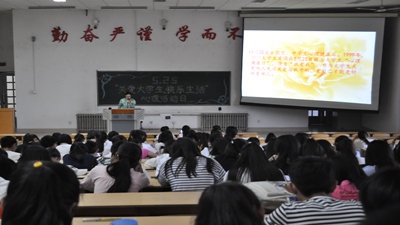 为庆祝 “5·25”心理健康节,引导、号召大学生关注自身心理健康,做好大学生心理健康教育工作。2017年5月24日晚公共卫生学院于在教学南楼举行了“关爱大学生,快乐生活”心理活动日活动。