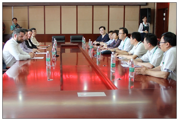在随后召开的座谈会上,贾庆卫、杨晓雯对英国克里斯蒂医院专家组来院访问表示欢迎,并就医院的发展概况、医院管理、科研培训等情况作了介绍。随后,专家组Jonathan Probets教授就癌症个体化治疗、临床试验、研究教育与我院进行了细致交流,现场回答了与会人员的提问。双方还拟就人员培训、境外课程开设、学科共建、科研技术合作等方面进行了洽谈。