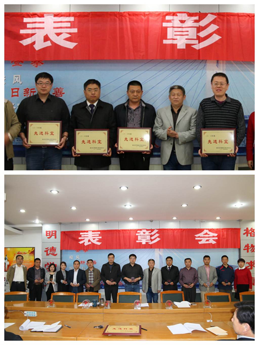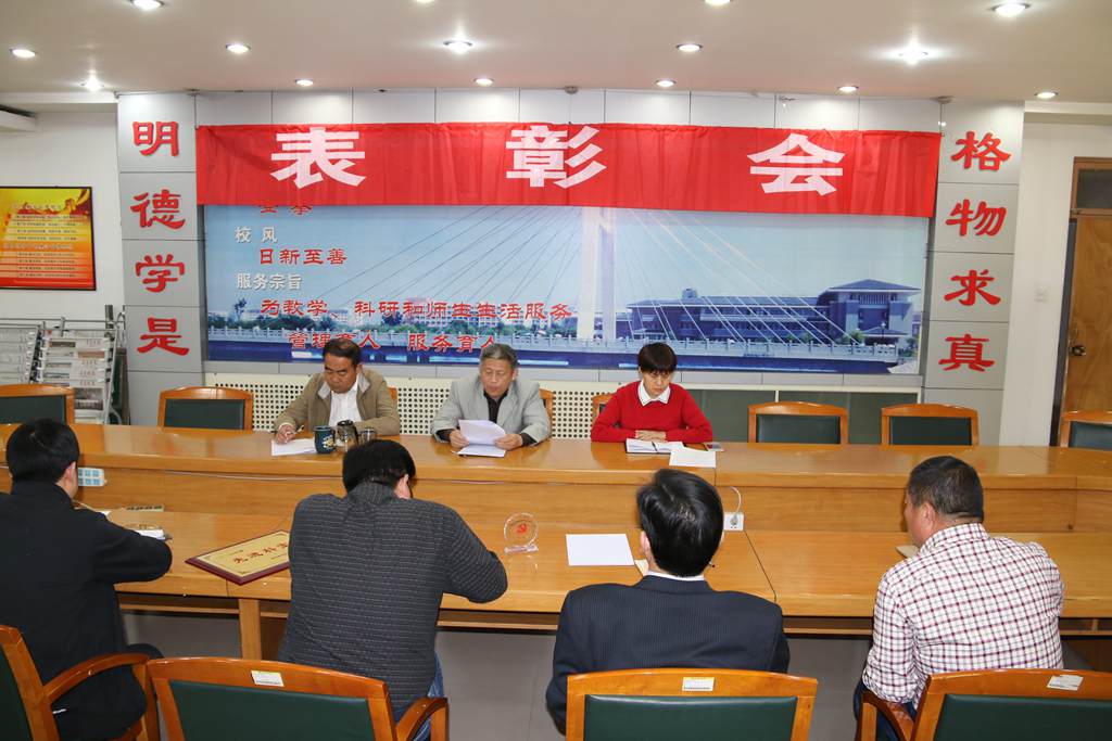 表彰会由后勤管理处处长刘均民主持,机关第四党总支副书记张月梅宣读了表彰决定。决定指出,在过去的一年里,机关第四党总支广大共产党员、群众,坚持以邓小平理论、“三个代表”重要思想和科学发展观为指导,认真学习党的十八大和十八届四中、五中、六中全会精神,认认真真开展“两学一做”学习教育,大力加强党的思想、组织、作风、制度和反腐倡廉建设,在学校后勤基建服务保障工作中较好地发挥了党组织的政治核心、保证监督、战斗堡垒作用和党员的先锋模范作用,为建设符合特色鲜明高水平医科大学要求的后勤基建保障服务体系做出了积极贡献,涌现出一批创先争优先进集体、创先争优标兵、爱岗敬业标兵和工会活动积极分子。根据《机关第四党总支关于2016年度考核工作的安排意见》(机关第四党总支[2017]1号)文件精神,经各党支部评选推荐,党总支研究决定,对工程管理科等4个先进科室、刘春生等11名创先争优标兵、宋凯等6名爱岗敬业标兵和张萍等10名工会活动积极分子予以通报表彰。