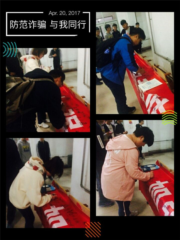4月19日、20日,医学信息工程学院分别在教学北楼AB座中间和教学南楼C座举办“加强自我防范意识•预防电信网络诈骗”签字活动。