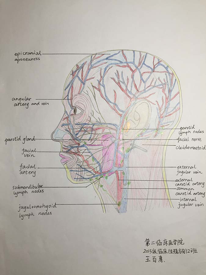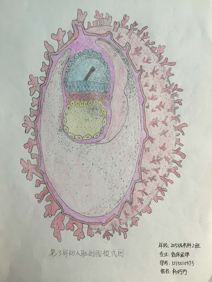 参赛学生们提交作品风格迥异,既有精细专业的心脏平面图,也有神奇的气管和支气管树;有半骨半肉的头面部血管神经,也有壮硕的臂前区和肘前区;既有详尽的胚泡植入过程,也有生动的第三周初人胚剖面模式……人体解剖学教研室和组织胚胎学教研室经过精心筛选,最终评选出百余幅优秀作品,获奖作品分别在新老校区展出。
