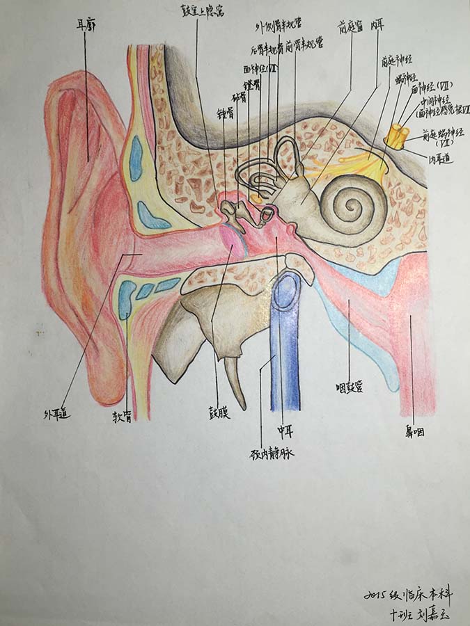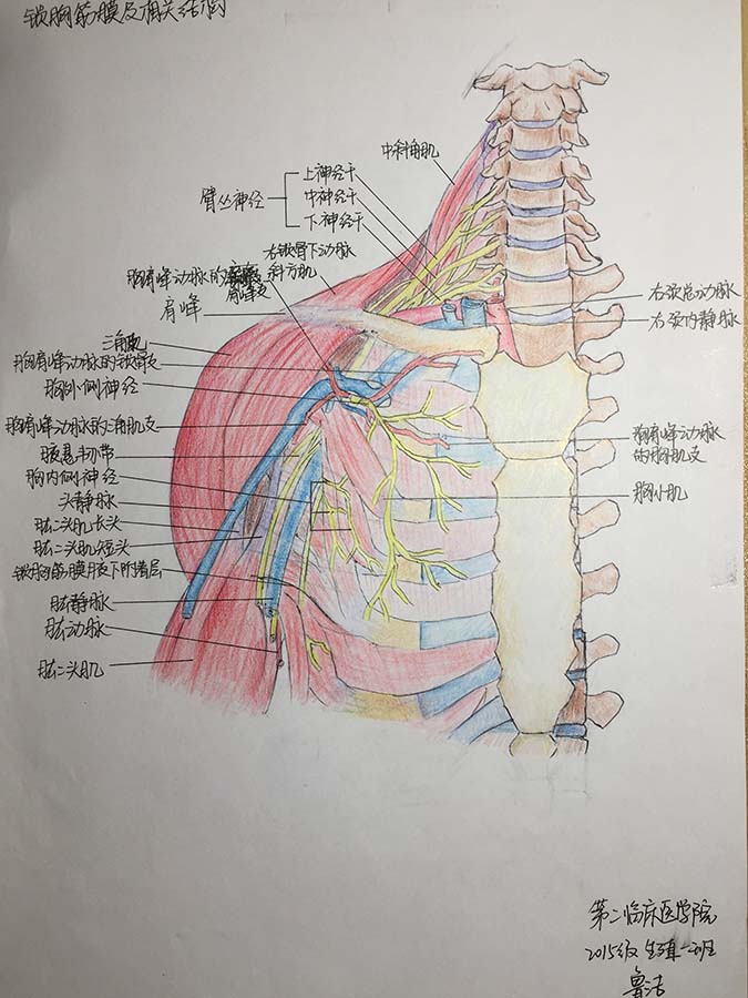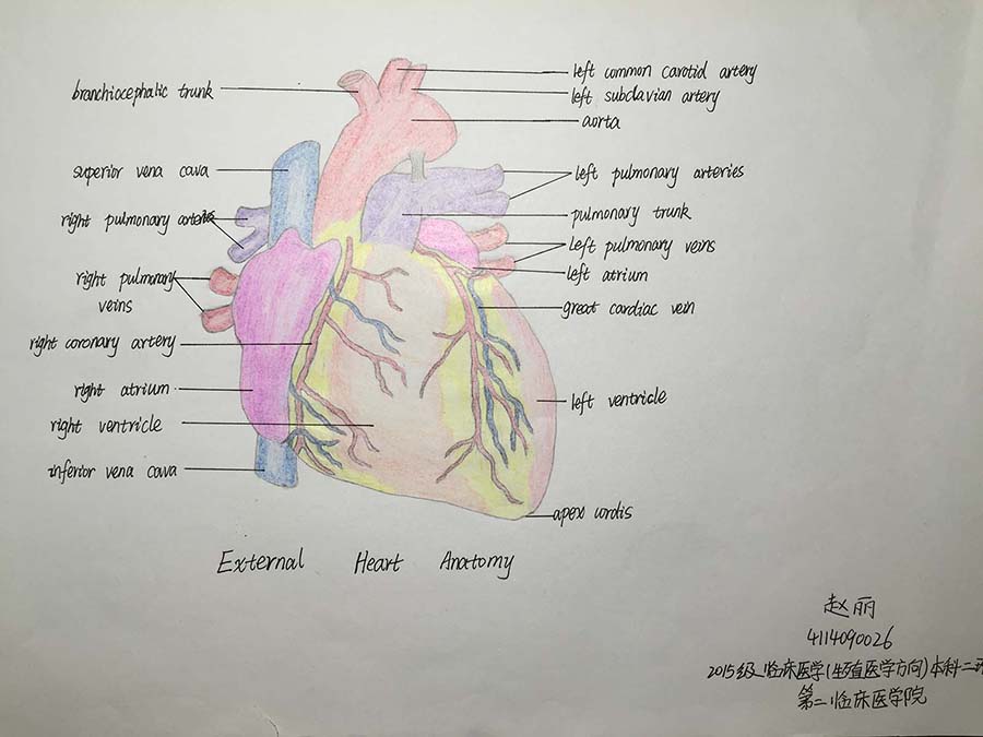 比赛从2017年初开始布置,在基础医学院2014、2015级临床医学专业学生中进行,每位同学结合《系统解剖学》、《局部解剖学》和《人体解剖学与组织胚胎学》课程相关知识,绘出其结构或器官,每人完成1-2幅作品。要求绘图遵循科学性原则,即所绘人体结构的比例大小、形态、位置及毗邻要严格遵循人体本身的结构特征,不可随意臆造和夸大表现某些结构和位置,也不可任意丢弃结构。其次,要遵循适当艺术性原则,即应用适当的绘画手法适当的表现所绘结构的立体感、空间感和质感,但要与艺术类的人体解剖绘图严格区分。