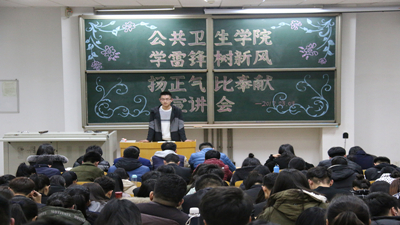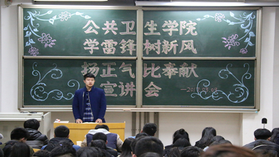 三月和煦的春风带着雷锋的精神向我们迎面吹来,为弘扬中华传统美德,重温雷锋精神,2017年3月9日,公共卫生学院于教学南楼成功举办了“学雷锋树新风,扬正气比奉献”宣讲会。学生会全体成员参加此次宣讲会。