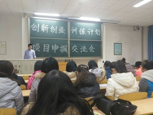 活动伊始,罗丽为大家简要介绍了大学生创新创业训练计划项目的内容和申报意义,希望同学们紧密结合专业知识,不断探索,为今后的课题申报和研究做好准备。随后,2014级吕思凯同学就项目申报的具体内容和流程进行了详细讲解,分享了自己的申报经验,希望同学们在学习中注重整体规划,及时总结和归纳,在不断的积累中寻找自己的兴趣方向和研究目标,从而在创新创业这条道路上取得更好的成绩。