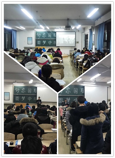 班会伊始,大家首先观看了有关南京大屠杀的影视资料,面对一幕幕惨绝人寰的血泪控诉,同学们震撼了,沉默了,强烈的民族责任感和使命感涌上心头。随后,各班班长分别通过主题演讲,带领同学们回顾历史,展望未来,呼吁大家以当代大学生的自立自强,发奋努力,为中华民族的伟大复兴贡献力量。现场气氛庄严肃穆,班会在同学们集体宣读“铭记历史,发奋图强”的誓言中落下帷幕。