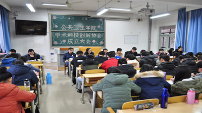 近年来,公共卫生学院紧密围绕工作中心,着眼于大力培养创新型、应用型人才。2016年12月8日,公共卫生学院于校本部南楼成立学生学术科技创新协会。公共卫生学院院长兼党委书记李栋、副院长江新泉、副院长张钦凤及各专业教师代表出席了会议。