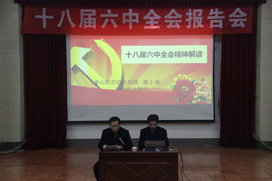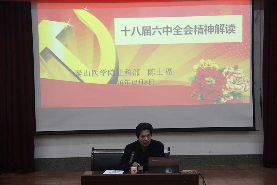 12月8日下午,基础医学院、第二临床医学院、继续教育学院、生命科学研究中心和口腔医学院邀请社科部主任陈士福教授在天外村校区视听中心做了十八届六中全会精神宣讲报告。
